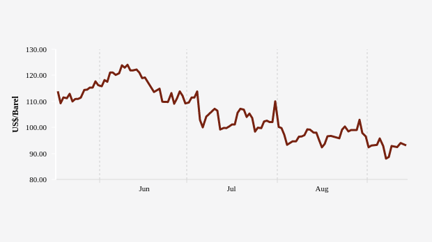 Minyak Stabil usai Jatuh 3 Perlambatan China Jadi Fokus. Ditambah dengan permintaan yang semakin berkurang kerana wabak Covid-19 harga minyak dijangka turun dan akan berada paras harga purata AS35 setong. Direncanakan UE bakal mulai menerapkan embargo total minyak Rusia pada awal Desember 2022 mendatang.